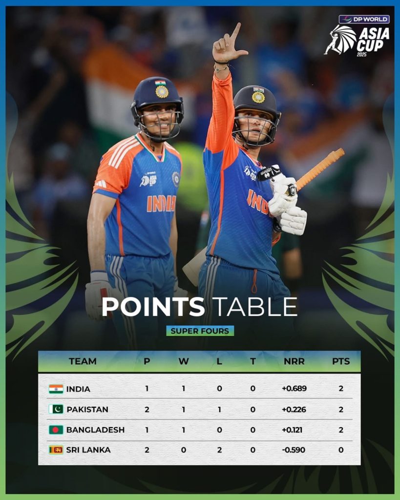මෙම පරාජය සමග ශ්රී ලංකා කණ්ඩායම සුපර් 4 වටයේ බංග්ලාදේශය හා පාකිස්ථානය සමග පරාජය වෙමින් ප්රසාද ලකුණු සටහනේ අවසන් ස්ථානයට පත් විය.