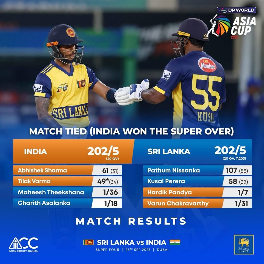 ආසියානු කුසලාන T20 තරගාවලියේ ශ්රී ලංකාව හා පැවැතුණු තරගය සුපිරි පන්දුවාරයේදී ඉන්දියා කණ්ඩායම ජය ගත්තේය.