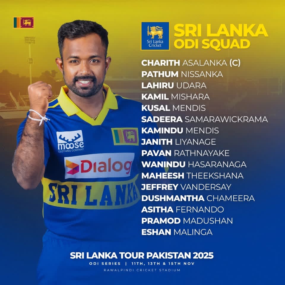 තවද පාකිස්ථානය හා පැවැත්වෙන එක්දින තරග 3කින් යුත් එක්දින තරගාවලිය ද සහභාගි වන ශ්රී ලංකා එක්දින කණ්ඩායම ද නම් කළේය.