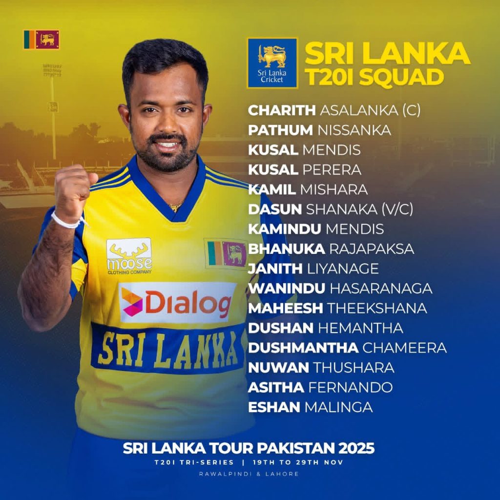 තරගාවලියට සහභාගි වන ශ්රී ලංකා කණ්ඩායම අද උදෑසන පාකිස්ථානය බලා පිටත්ව ගියේය.