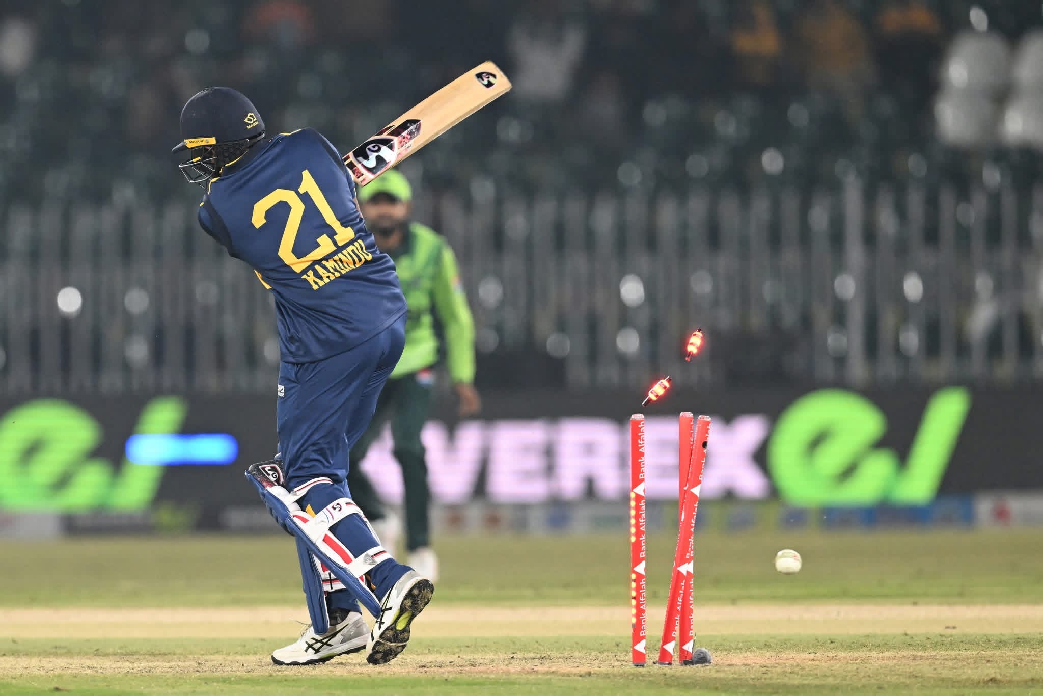 වනිඳු හසරංග ලකුණු 54ට කඩුලු 3ක් ද පිත්තෙන් ලකුණු 59ක් ද ලබා ගත්තේය.