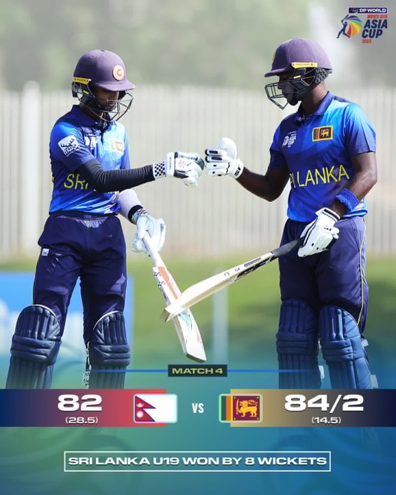 ආසියානු කුසලාන වයස 19න් පහළ කුසලානයේ නේපාලය හා සමග තරගයෙන් කඩුලු 8කින් ශ්රී ලංකා වයස 19න් පහළ කණ්ඩායම ජය ගත්තේය.