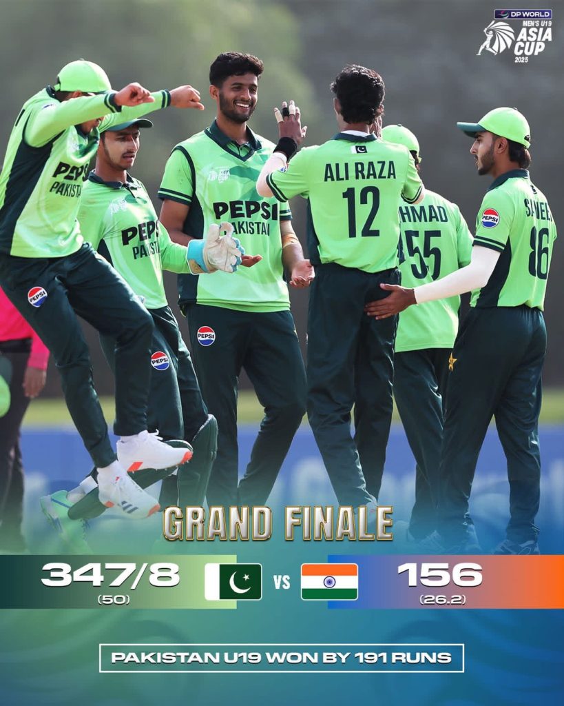 වයස 19න් පහළ ආසියානු කුසලාන එක්දින තරගාවලියේ ශූරතාව පාකිස්ථාන වයස 19න් පහළ කණ්ඩායම දිනා ගත්තේය.