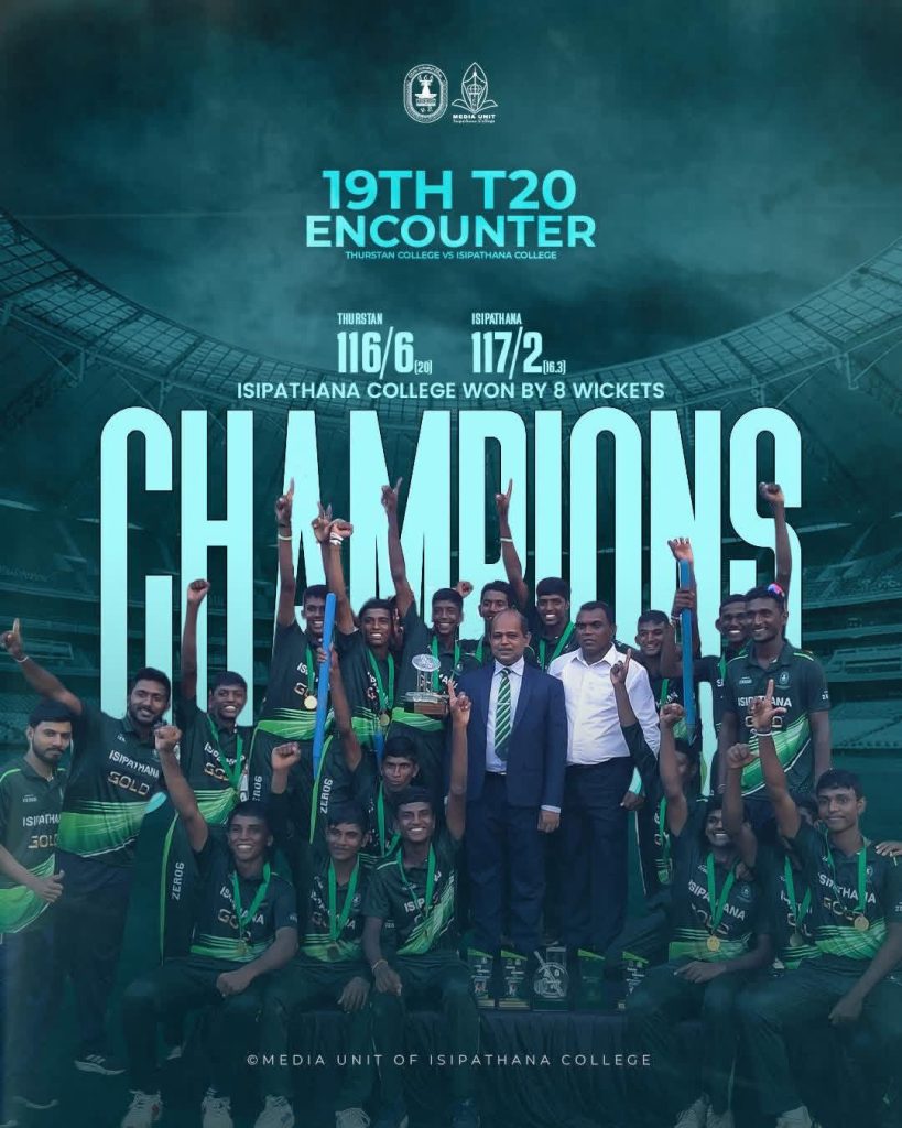 කොළඹ තර්ස්ටන් විද්යාලය සහ ඉසිපතන විද්යාලය අතර T 20 ක්රිකට් තරගය කඩුලු 8ක ජයක් ලබා ගන්නට ඉසිපතන කණ්ඩායම සමත් විය.